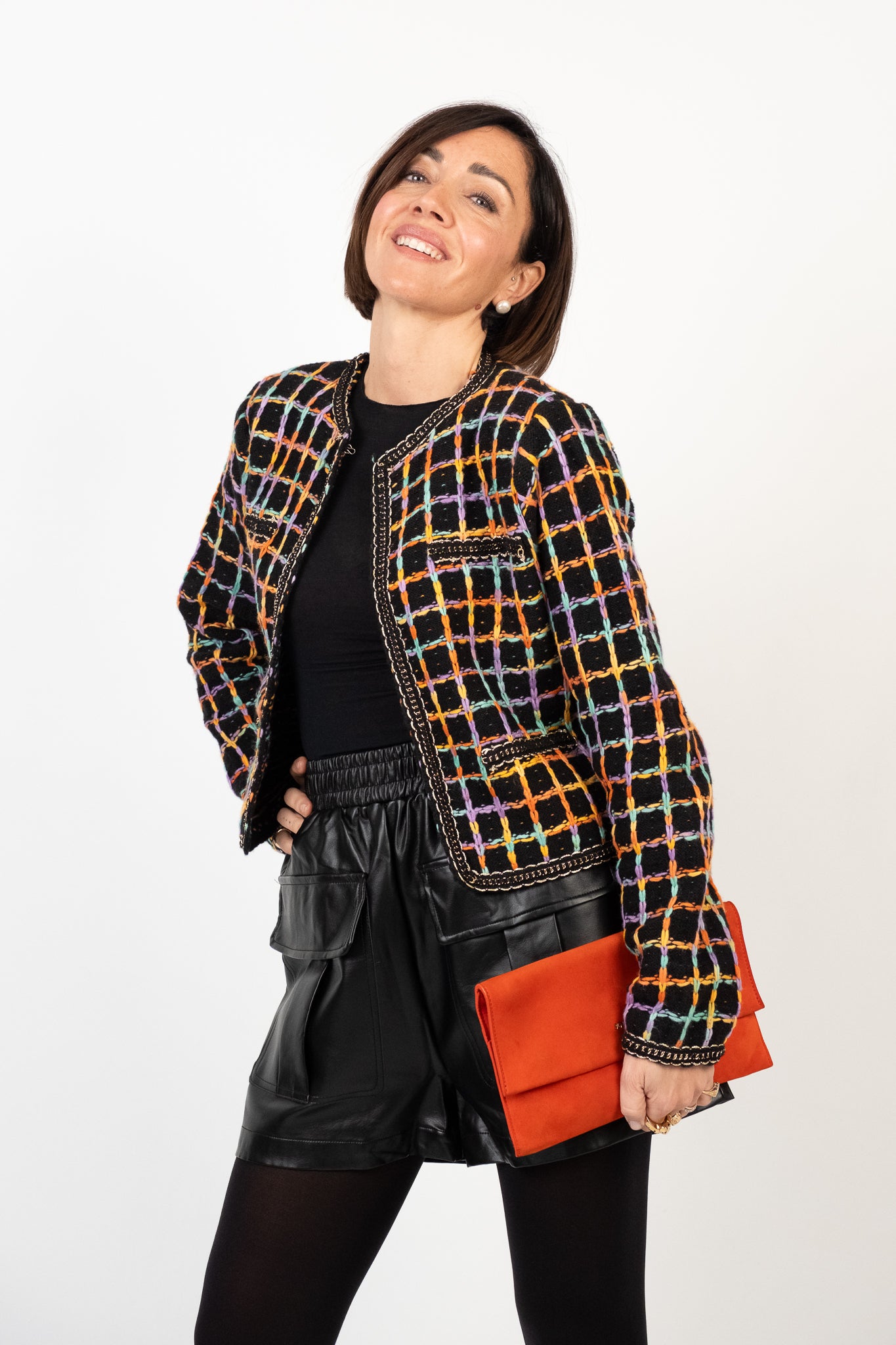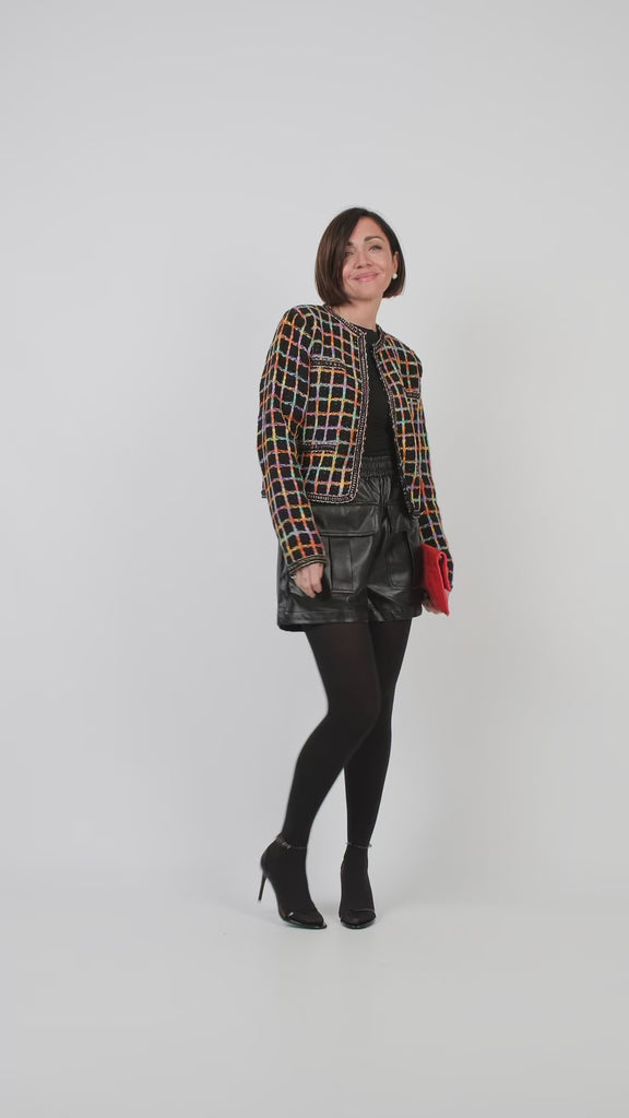 Composizione: 65% viscosa, 33% poliestere, 2% elastan