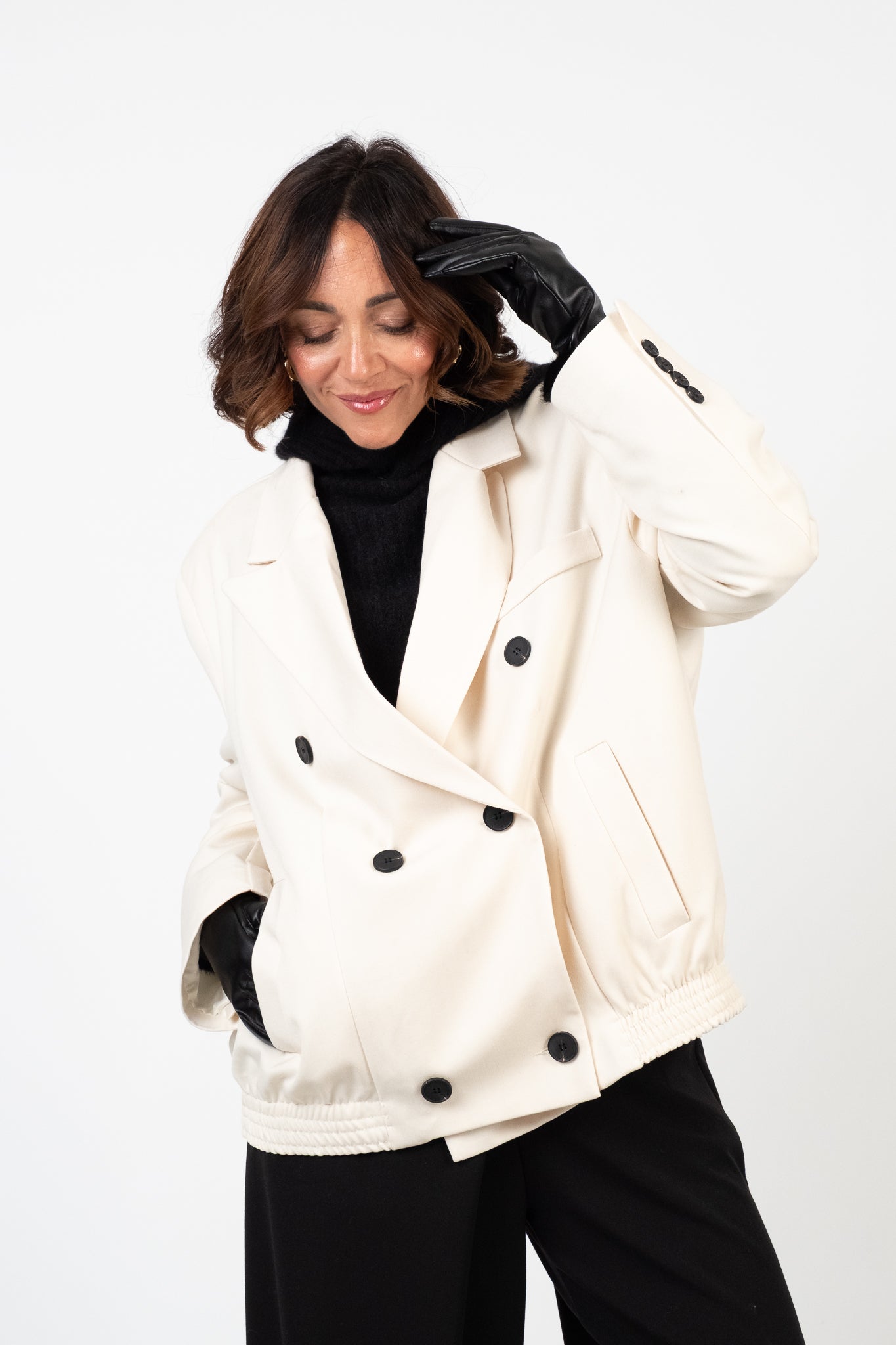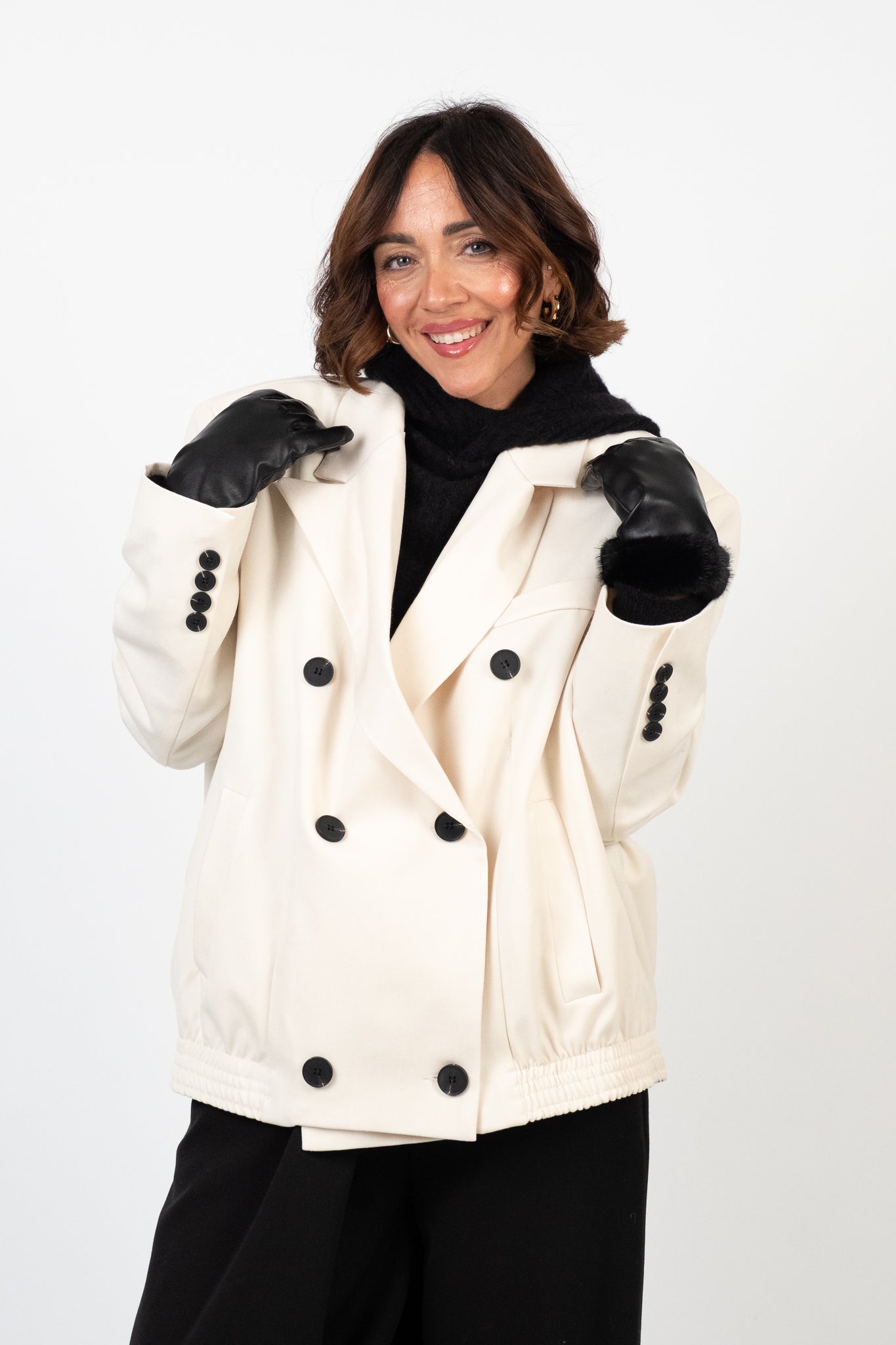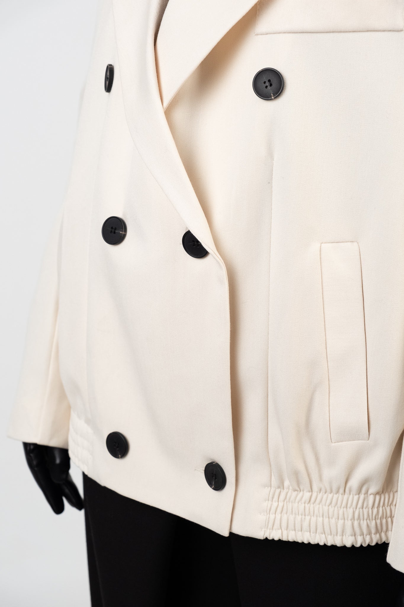 Composizione: 77% poliestere, 17% viscosa, 6% elastan