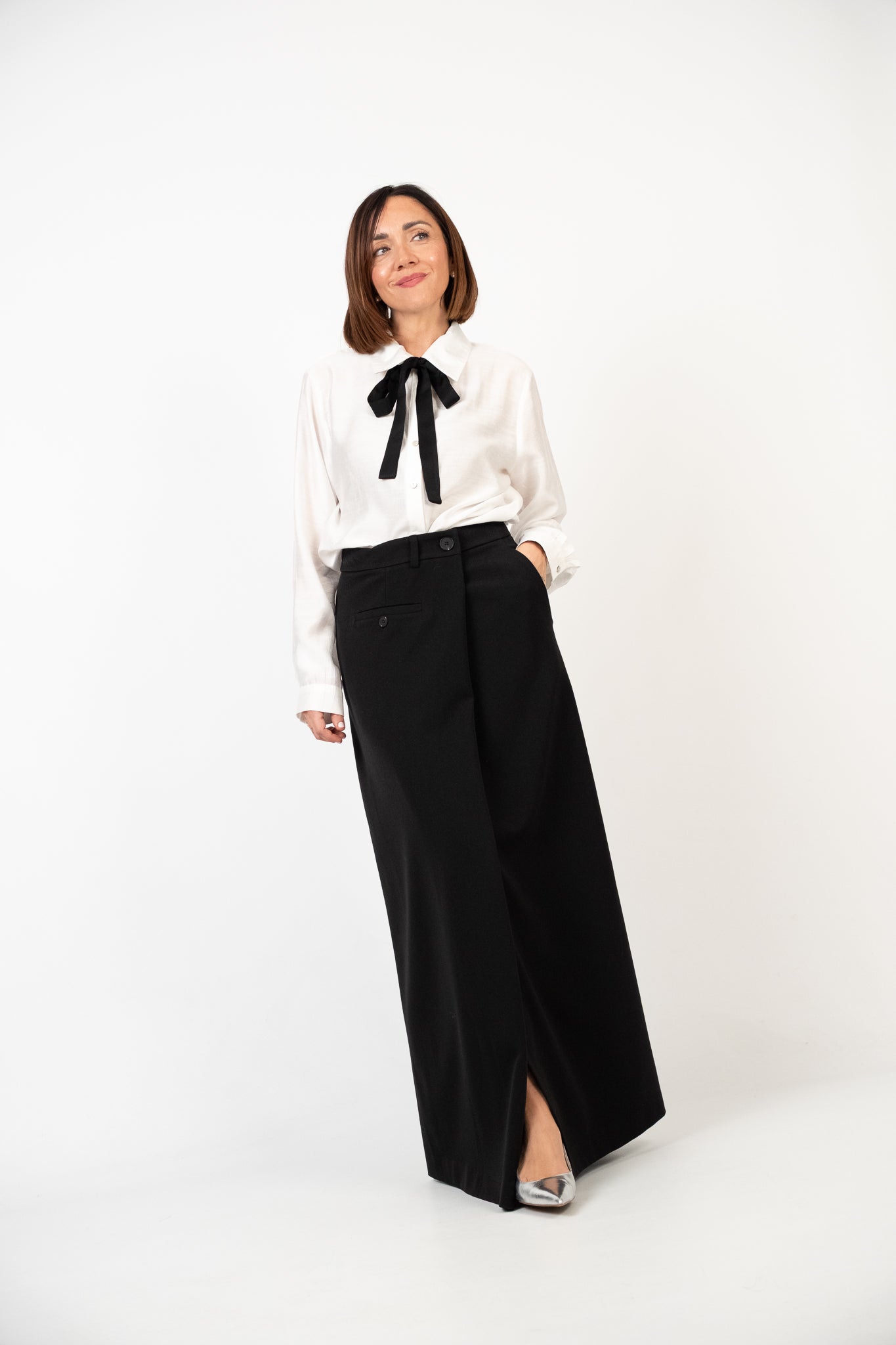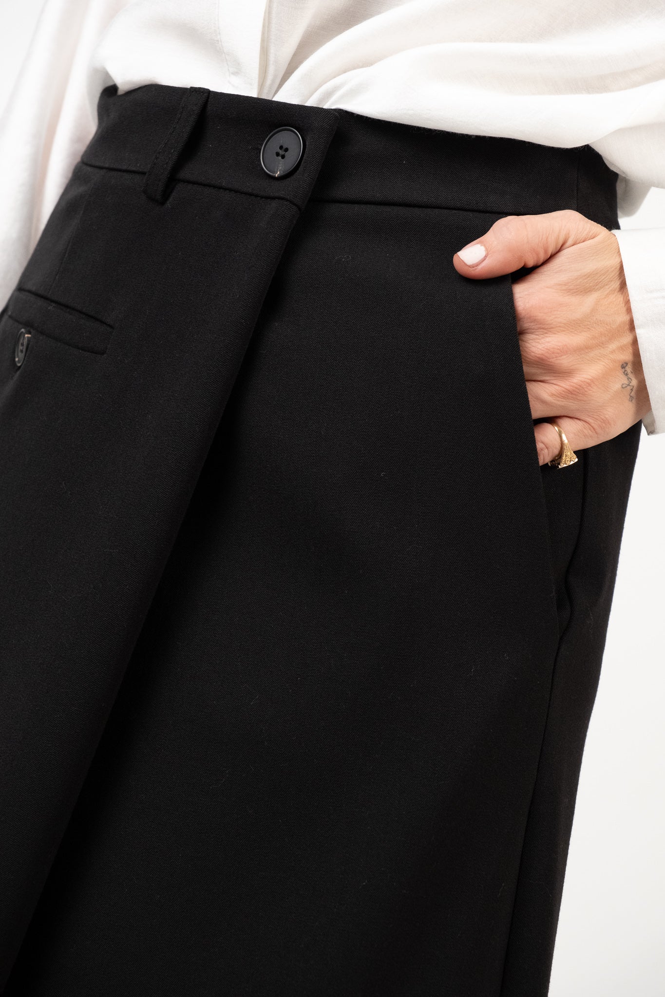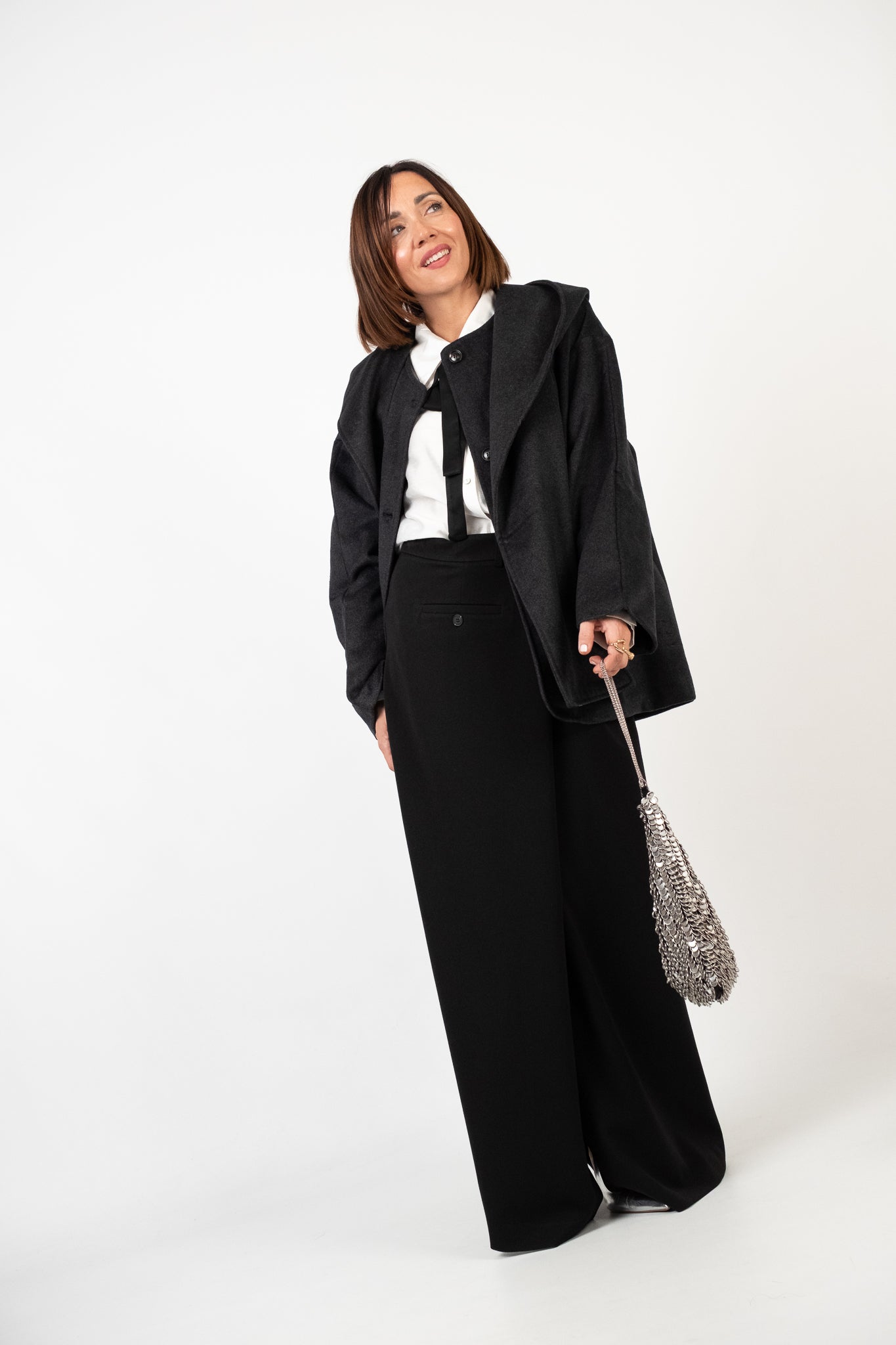 Composizione: 77% poliestere, 17% viscosa, 6% elastan. Fodera: 100% poliestere.