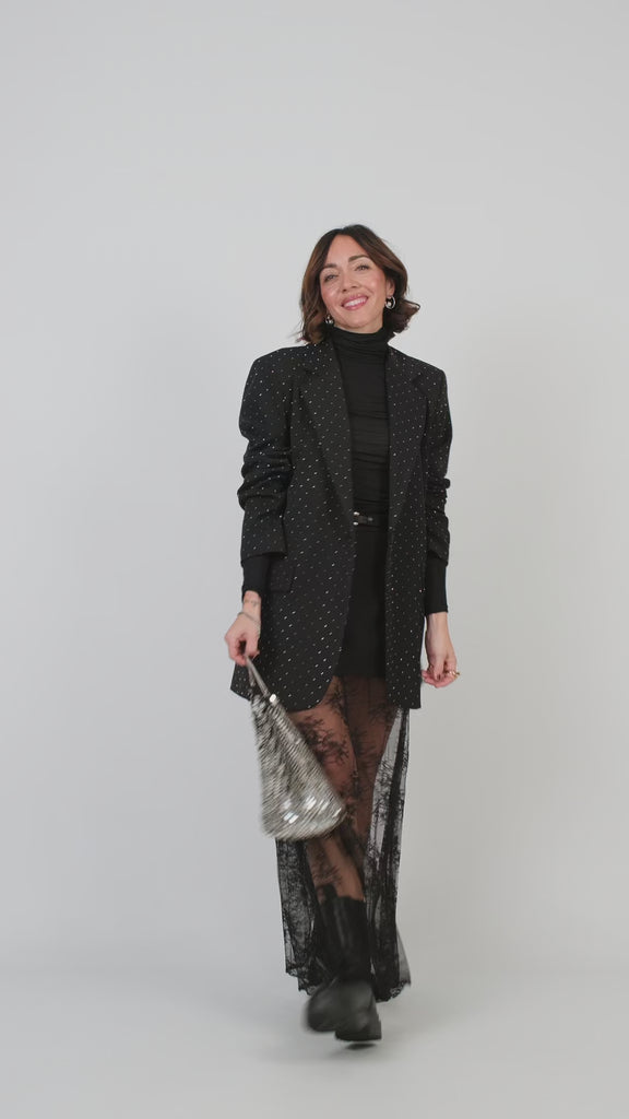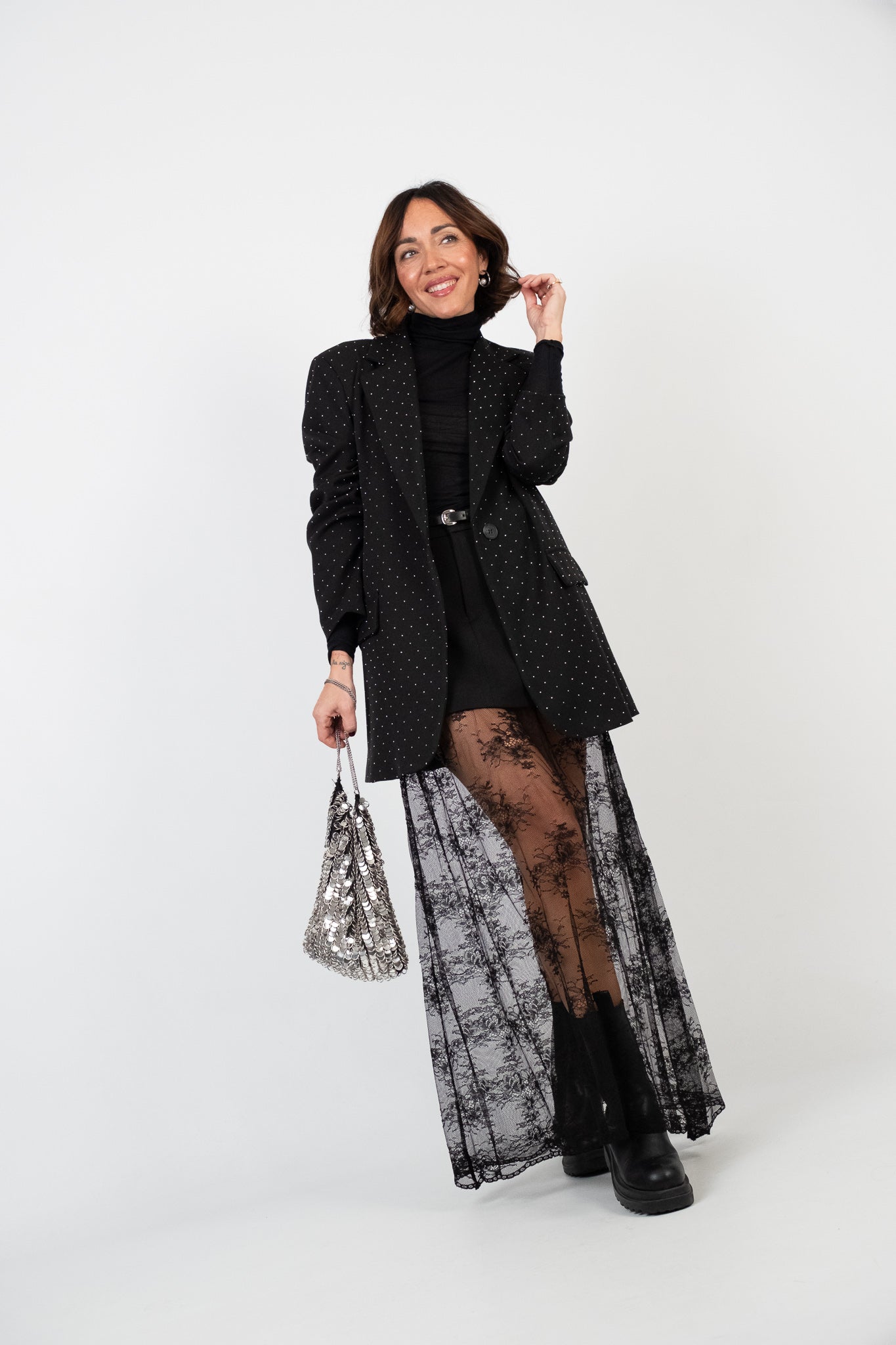 Composizione: 77% poliestere, 17% viscosa, 6% elastan.