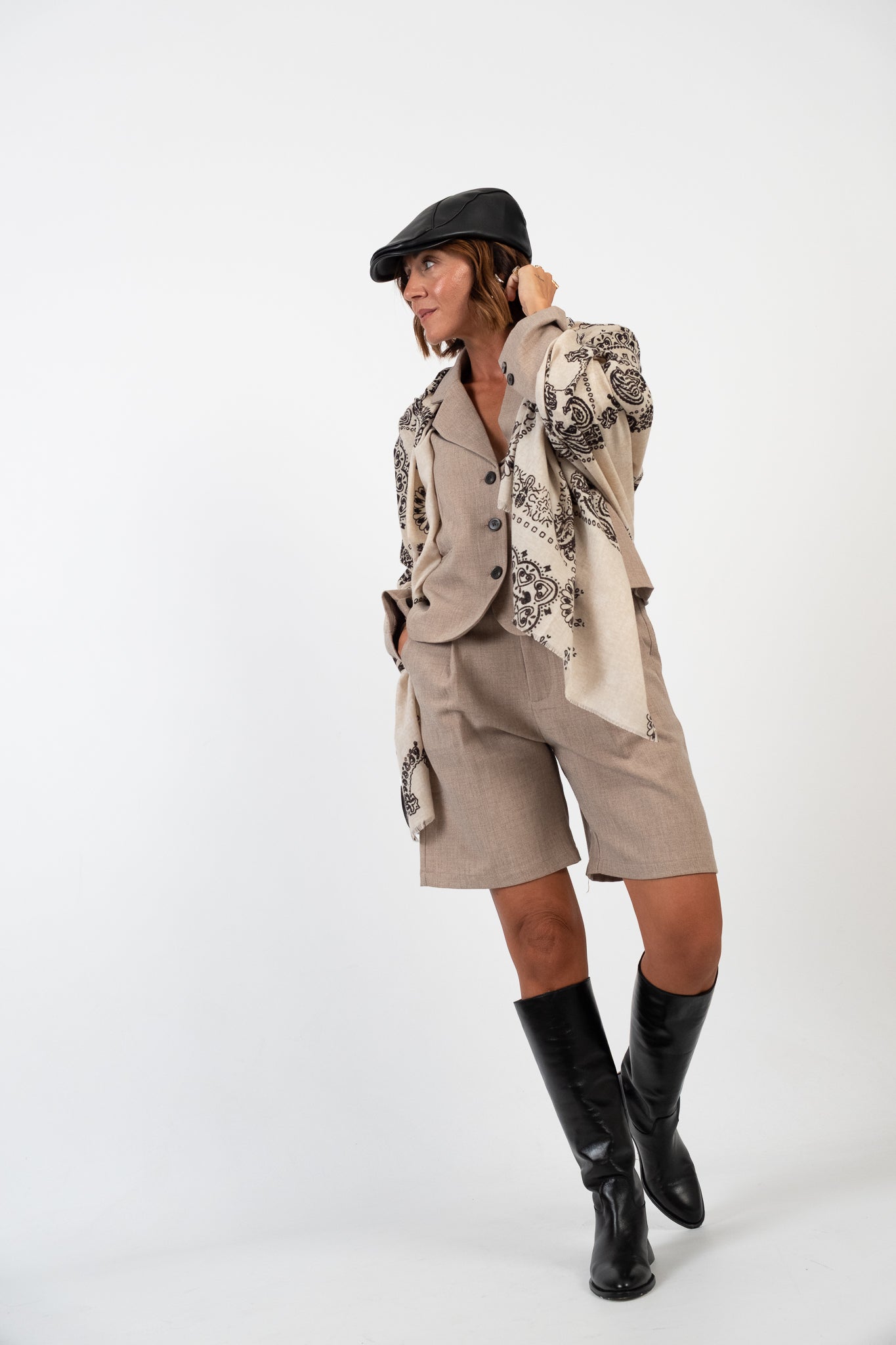 Composizione: 50% viscosa, 46% poliestere, 4% elastan.