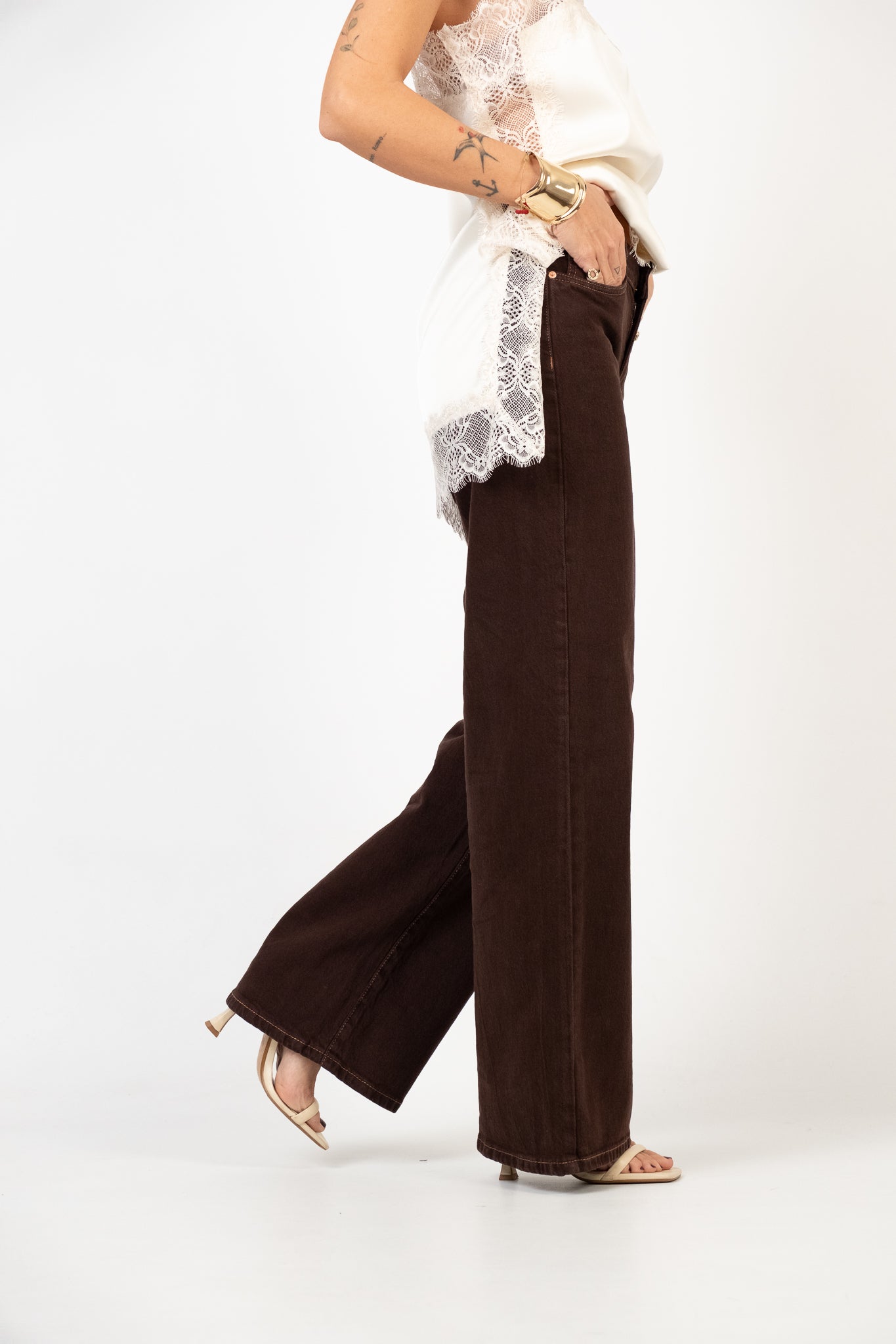 Lile's tip: grazie all'irresistibile nuance marrone cioccolato questo jeans è perfetto per chi cerca un'alternativa al classico blu. Abbinalo con colori neutri per un look classico o con tonalità accese per un look con carattere.