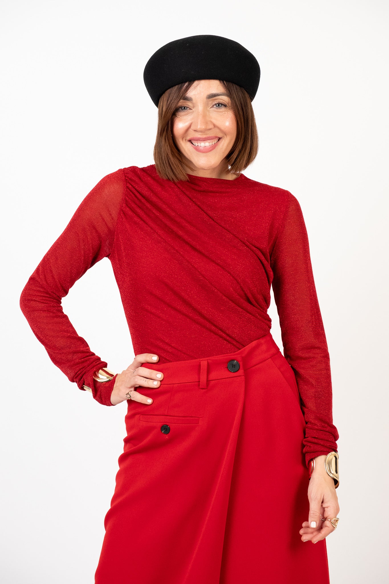 Composizione: 39% poliestere, 32% metallo, 24% viscosa, 5% elastan. Fodera: 95% viscosa, 5% elastan.