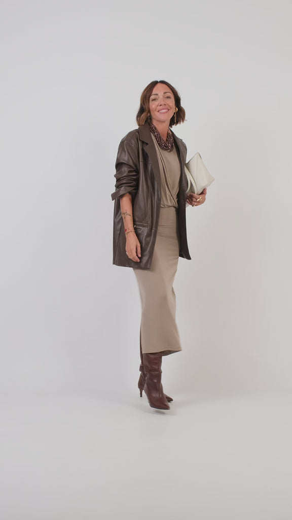 Composizione: 64% viscosa, 33% poliestere, 3% elastan.