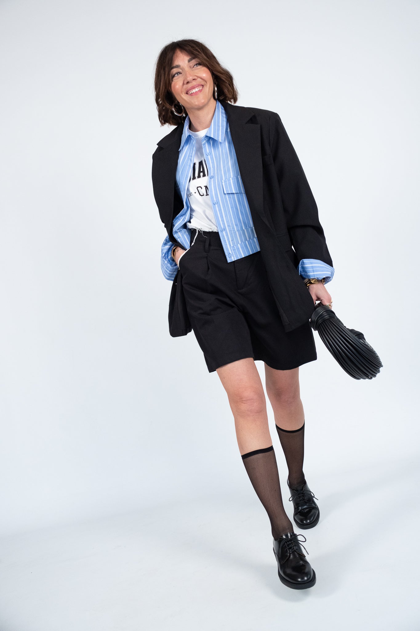 Composizione: 64% poliestere, 31% viscosa, 5% elastan.