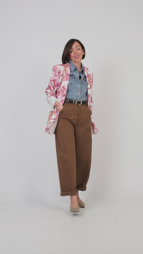 Lile’s tip: un capo di carattere che si presta a diverse occasioni d’uso, dalle più formali alle più casual. Abbinalo a un pantalone a sigaretta e una blusa tinta unita che riprende i colori del fiore, oppure indossalo sopra una jumpsuit in lino per un look estivo sofisticato.