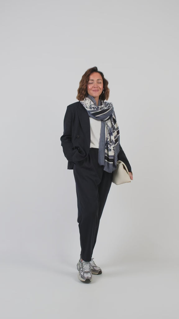 Composizione: 65% poliestere, 32% viscosa, 3% elastan.