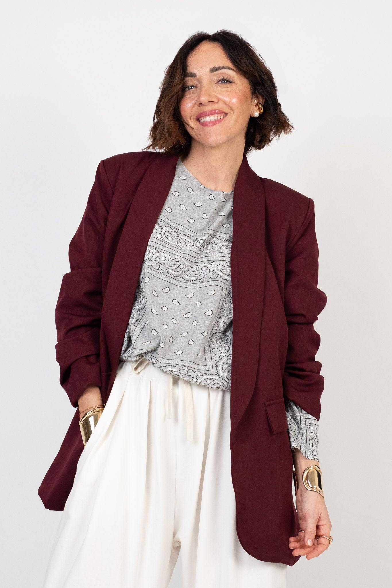 Lile's tip: questo blazer è un must-have del Camerino. Il capo passe-partout da avere sempre nell’armadio. Indossalo su una t-shirt e jeans per un look effortless da giorno, oppure come protagonista dell’outfit con pantaloni sartoriali o una gonna midi per un’eleganza contemporanea. È quel pezzo chiave che eleva qualsiasi look, dal più casual al più sofisticato, senza mai stancare.