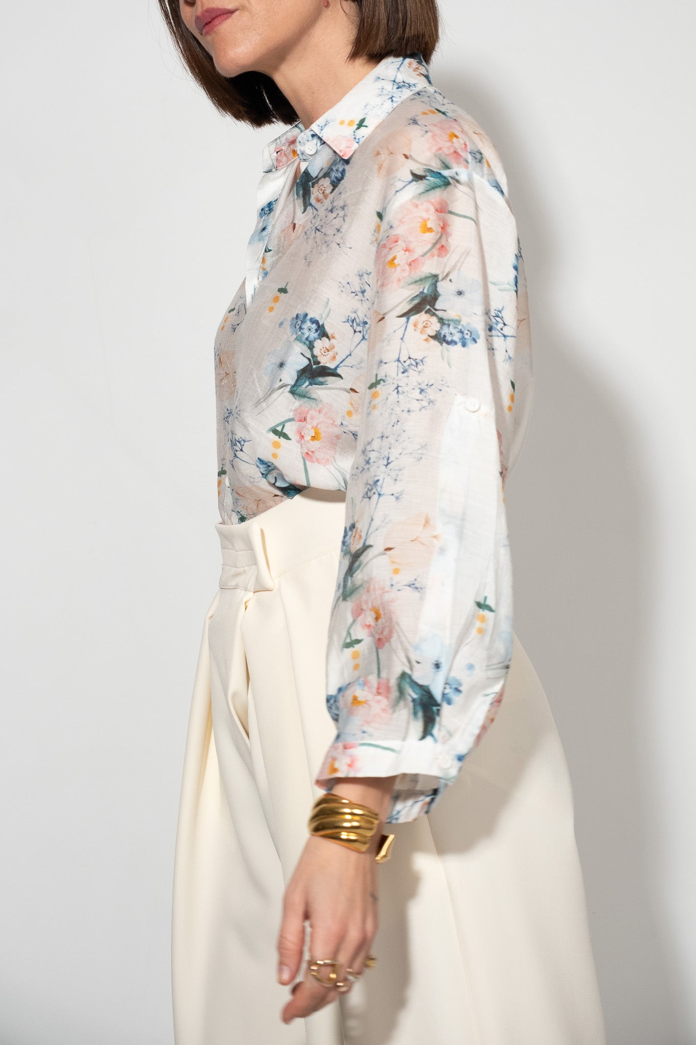 Camicia in tessuto leggerissimo e linea scivolata. Spalla scesa e polsini lineari. Collo classico a punta e chiusura frontale con bottoni. Design pulito ed essenziale che mette in risalto la stampa botanica. Tessuto fresco e traspirante. Martingala sulle maniche. Lile indossa la taglia S/M.