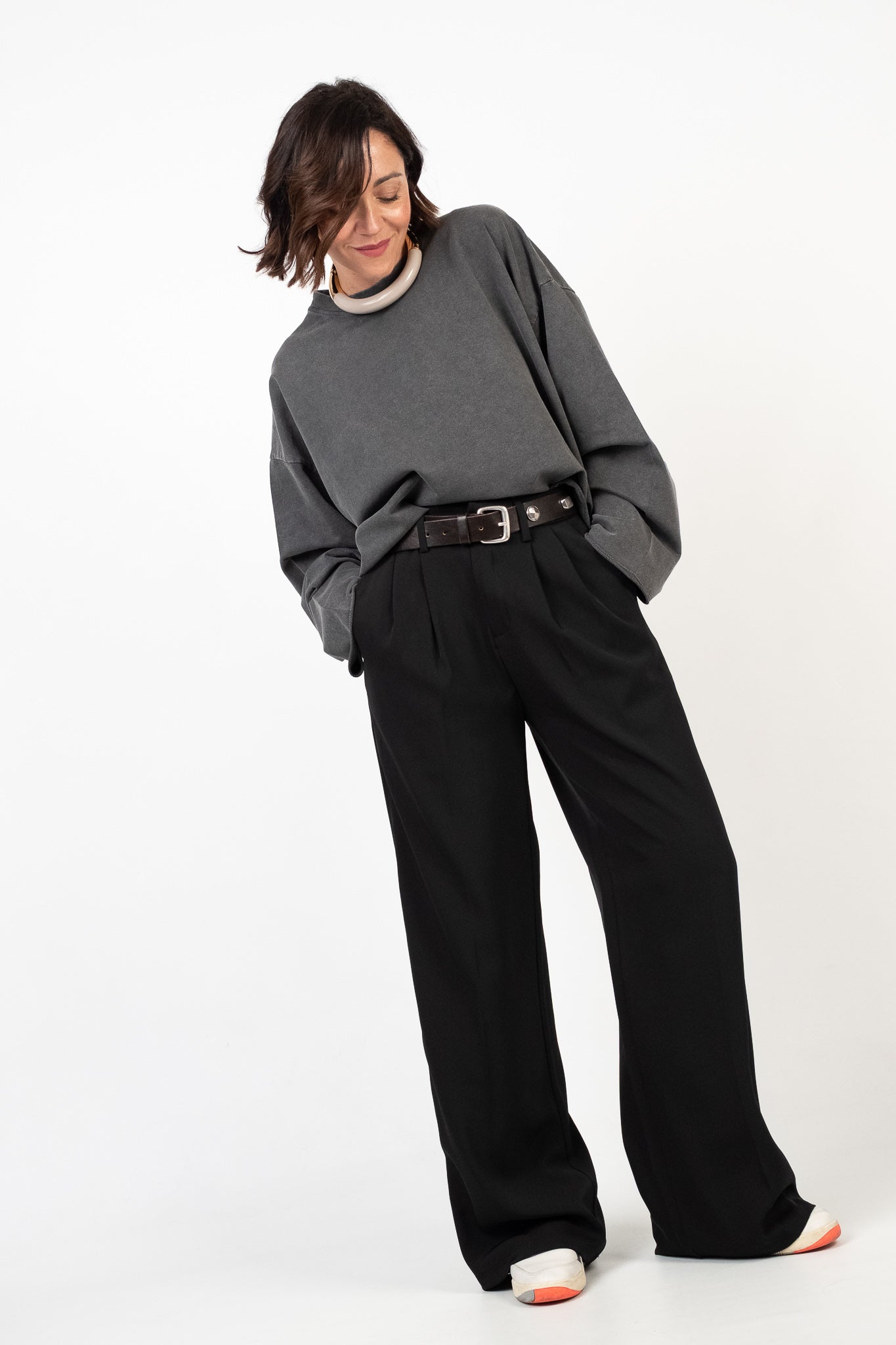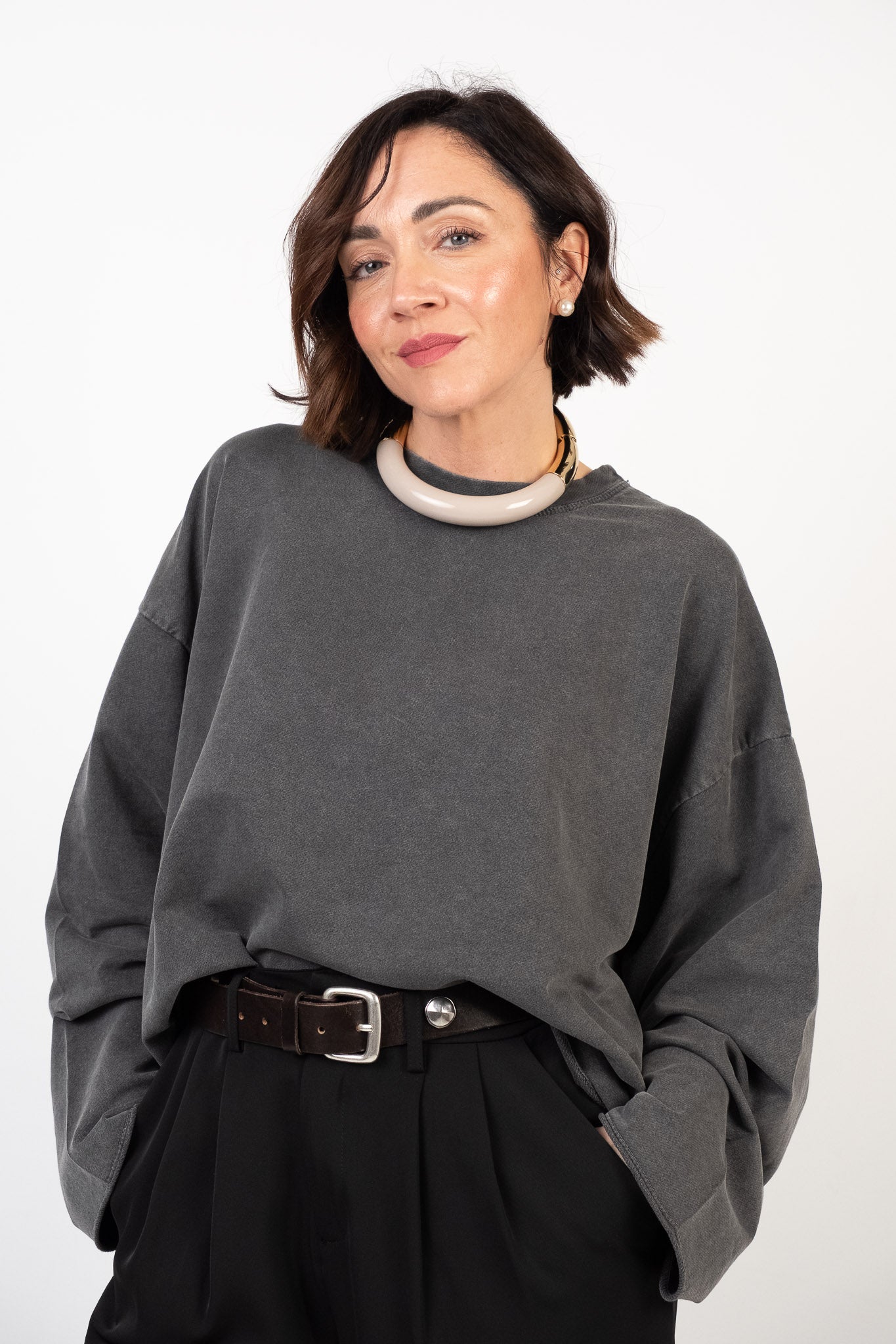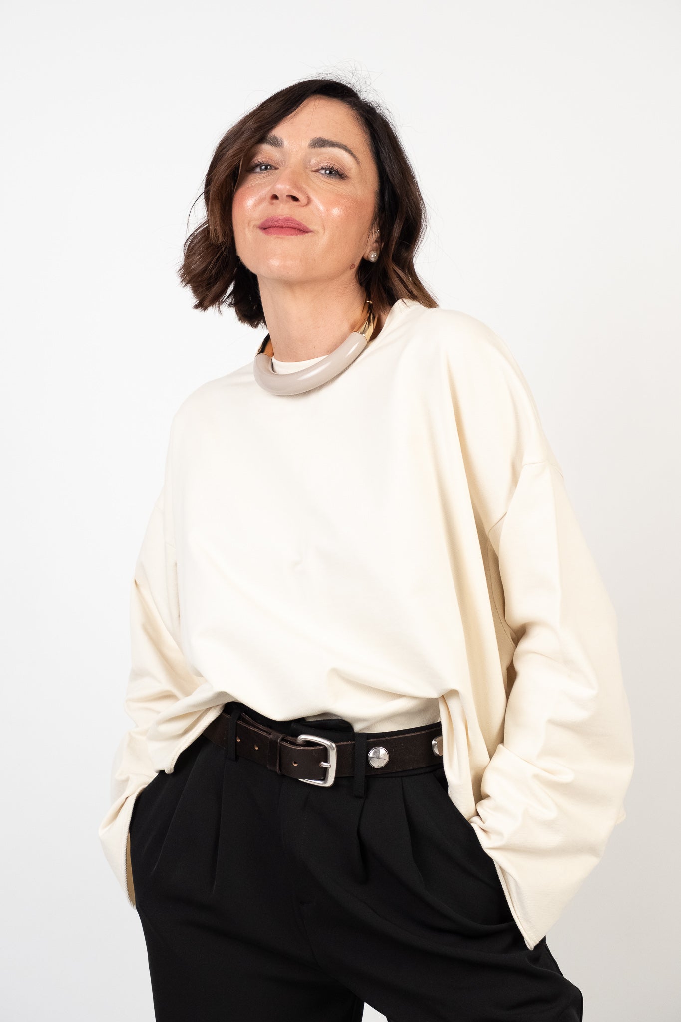 Lile's tip: abbina la felpa a un denim dal lavaggio medio-chiaro e dal fit rilassato per un look quotidiano. Per un finish più romantico portala con una gonna in ecopelle lunghezza midi.