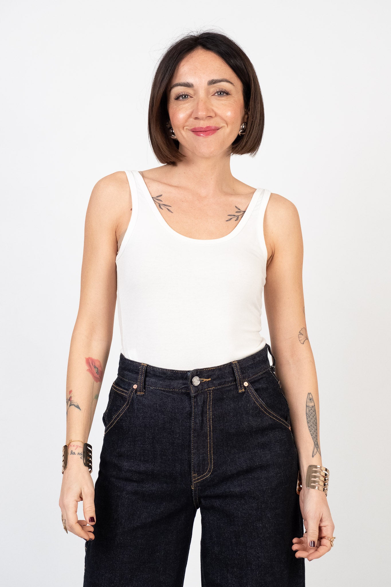 Canottiera dal design essenziale. Scollo rotondo e rifinito. Linea aderente che segue le forme del corpo. Lunghezza regolare ai fianchi. Tessuto leggero, elasticizzato e traspirante. Texture morbida al tatto. Pesantezza media.